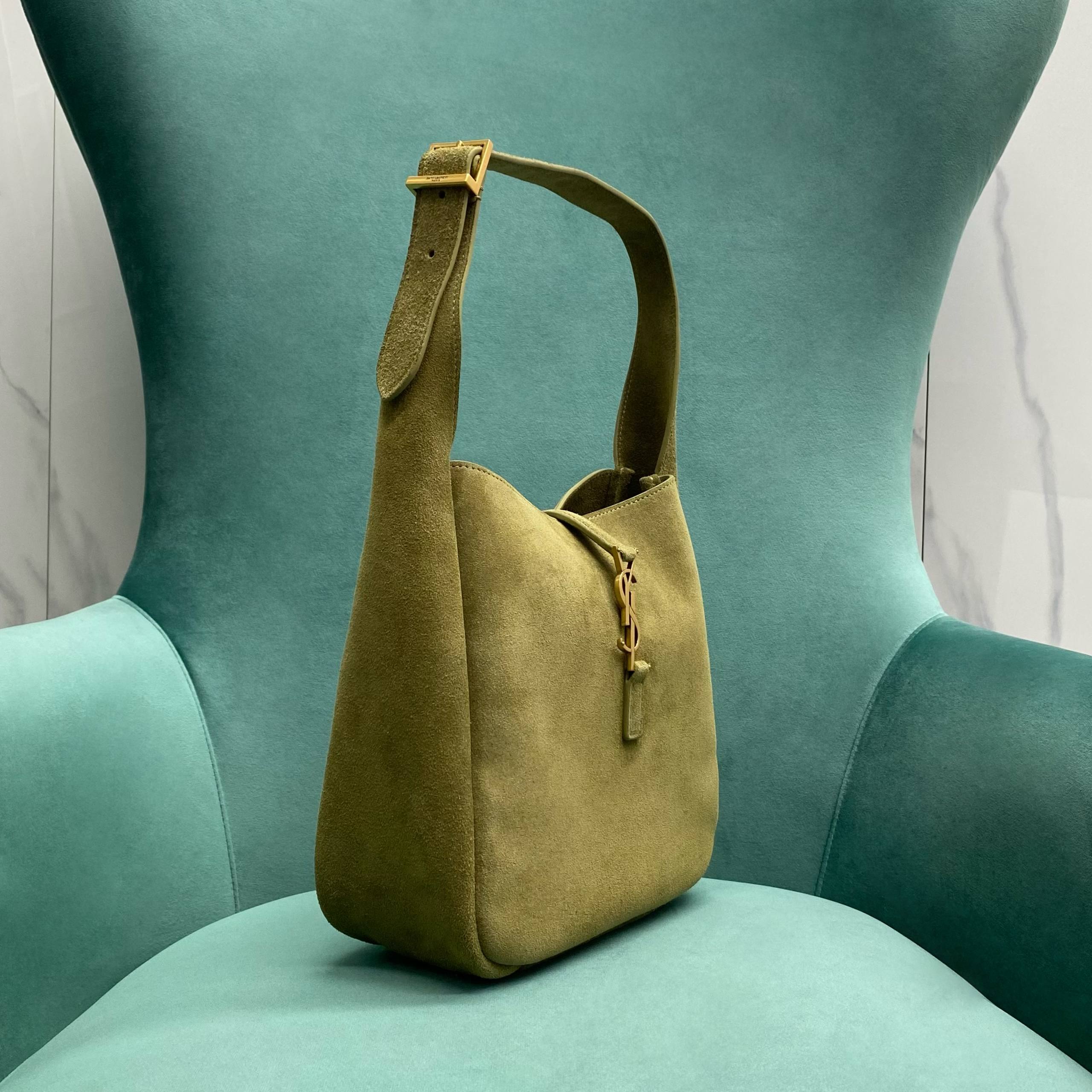 • Pomegrante 생로랑 스웨이드 소재의 LE 5 A 7 소프트 스몰백 713938 22*9.5*21.5cm 그린