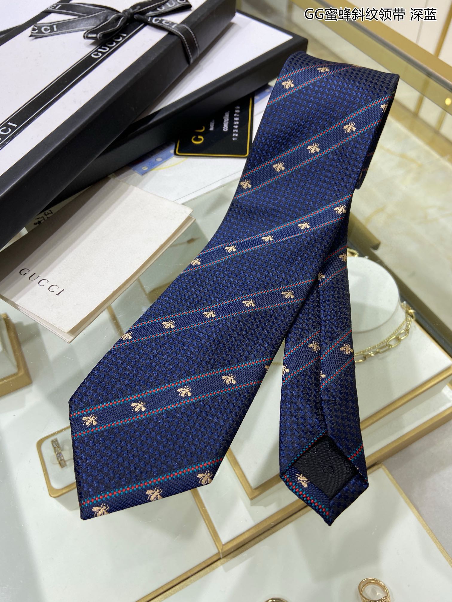 • AGG 구찌 꿀벌 능직 타이 블루 Gucci