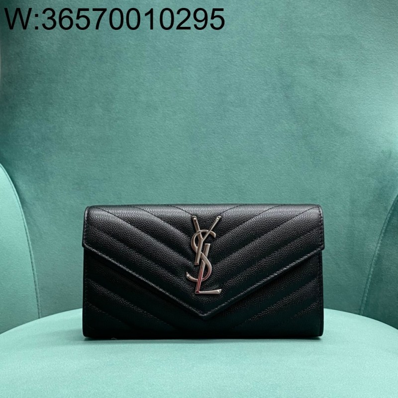 • Pomegrante 생로랑 은장 마틀라세 플랩 장지갑 372264 19*3*10.5cm 블랙