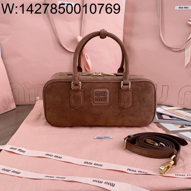 • [JHL] 미우미우 아르카디 스웨이드 백 5BB148 27*12*9cm 다크 브라운