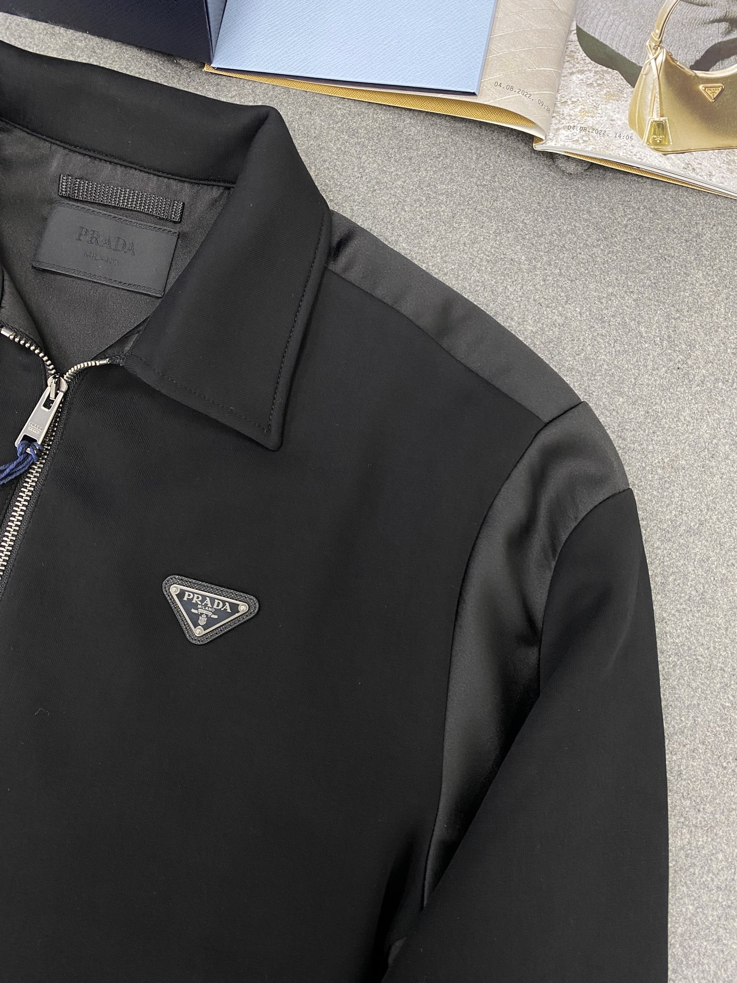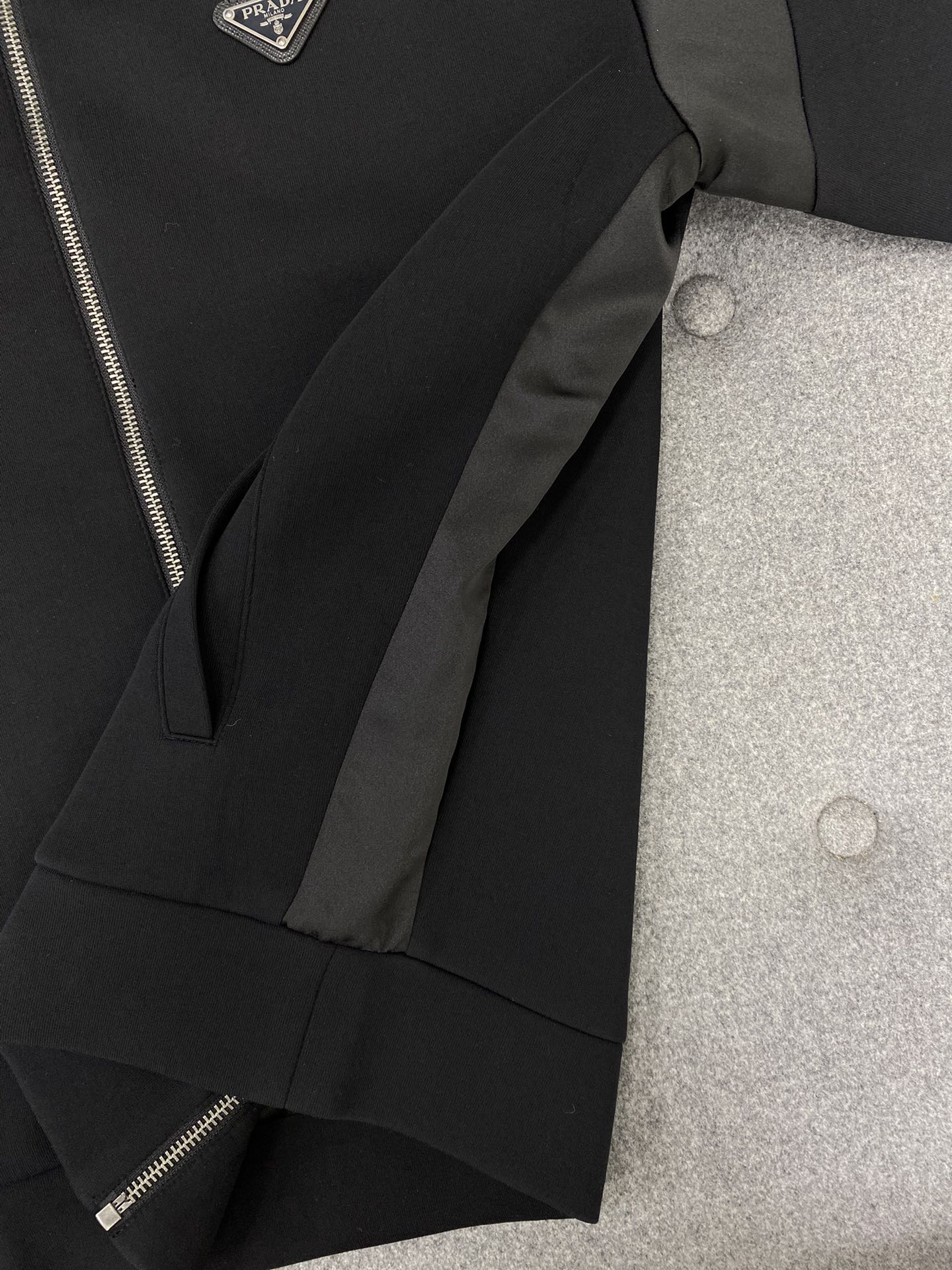 • TJ공장 프라다 삼각 로고 이음 지퍼 자켓 블랙 Prada