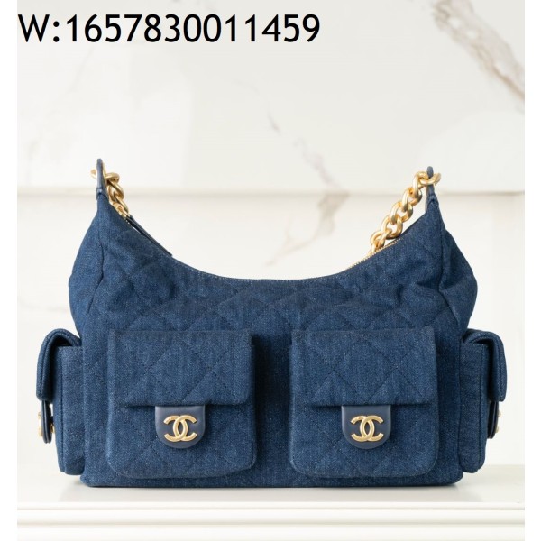 • [JD] 샤넬 25C 금장 호보백 데님 라지 다크 블루 27*35*18cm CHANEL