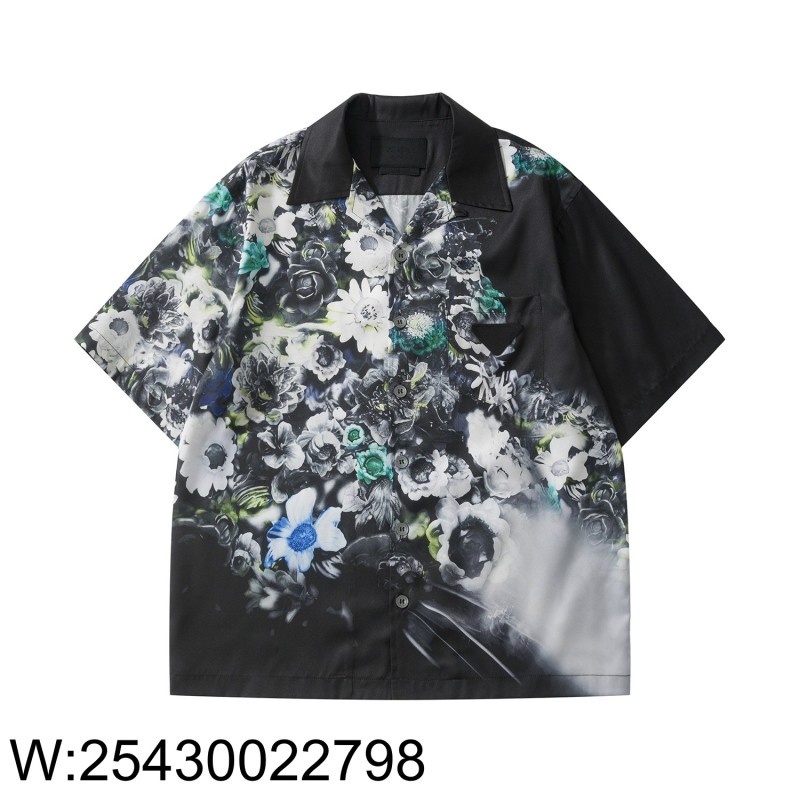 • [흰] 프라다 프라워 프린트 반팔 셔츠 블랙