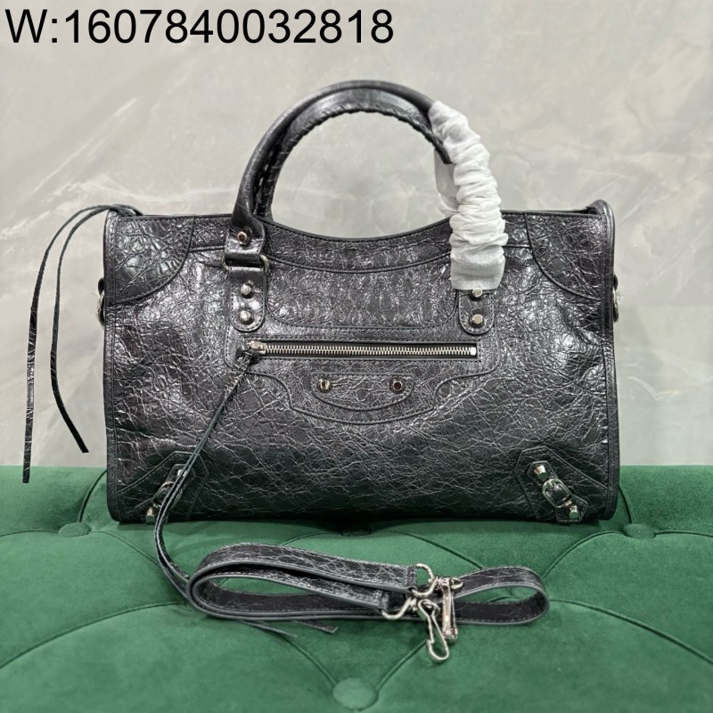 • [dxg] 발렌시아가 르 시티 라지 백 38*24*14cm 회흑색 샤이니 실버 장식