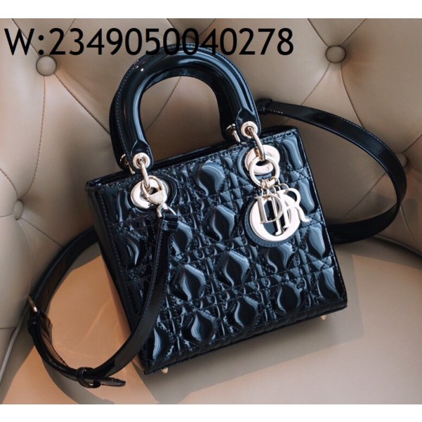 [엔젤] 디올 스몰 레이디백 페이턴트 까나쥬 20*17*8cm 블랙 금장