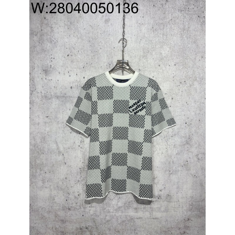 • [사슬공장] 루이비통 SS25 모노그램 자카드 다미에 니트 반팔티 라이트 그레이