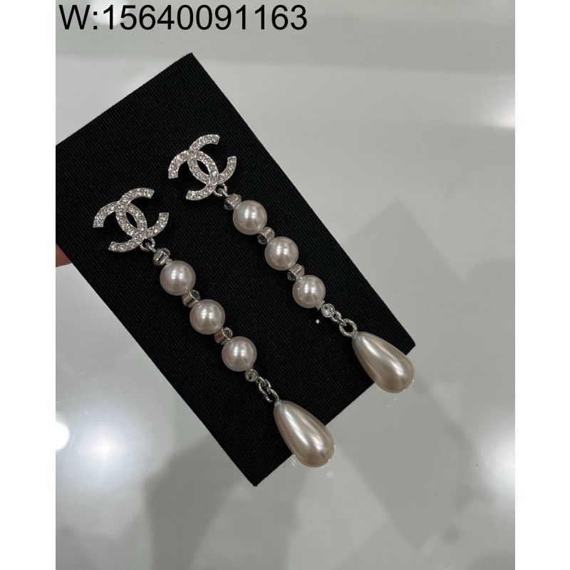 • AGG 샤넬 CC로고 진주 물방울 롱귀걸이