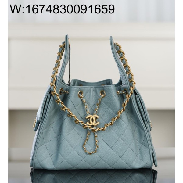 • [JD] 샤넬 25 스몰 핸드백 그레인드 카프스킨 골드 메탈 스카이 블루 30*26*14cm