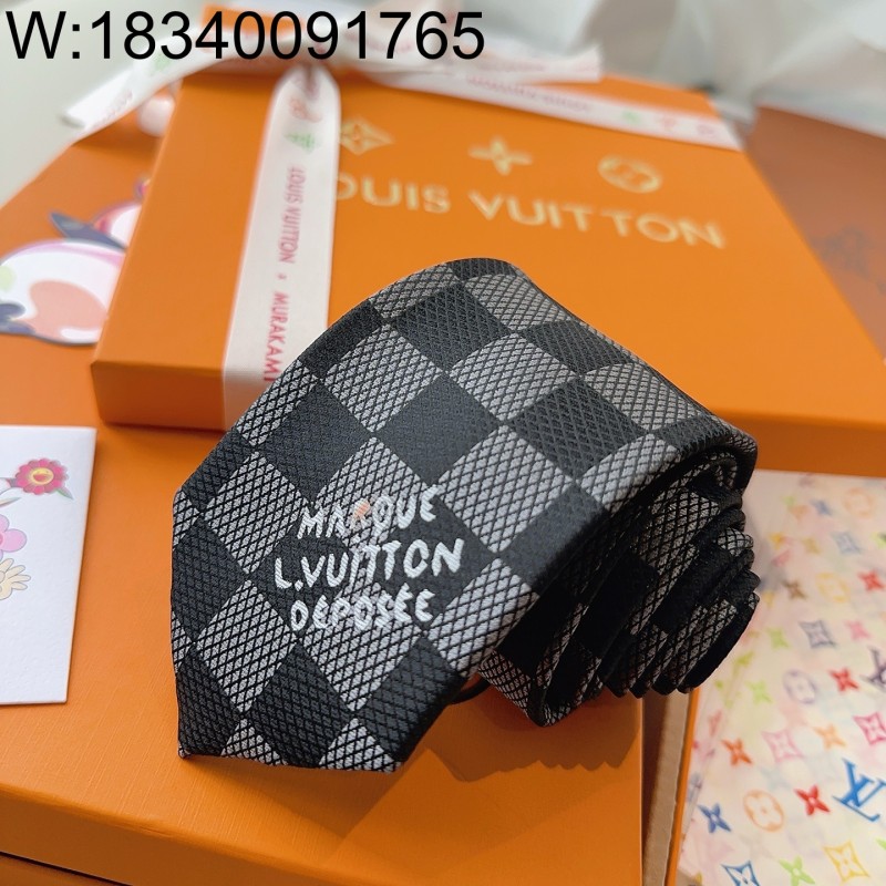 • AGG 루이비통 모노그램 점보 다미에 넥타이 블랙 M93397
