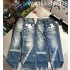 • V공장 루이비통 모노그램 패치 워싱 청바지 블루