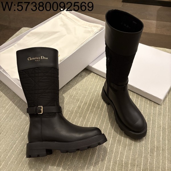 [QR 5009] 디올 D-타운 부츠 카프스킨 앤 나일론 자수 까나쥬 모티프 블랙
