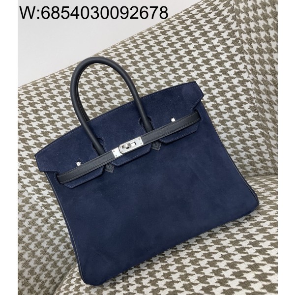 • [장인의집] 에르메스 버킨 25 은장 네이비 스웨이드 swift
