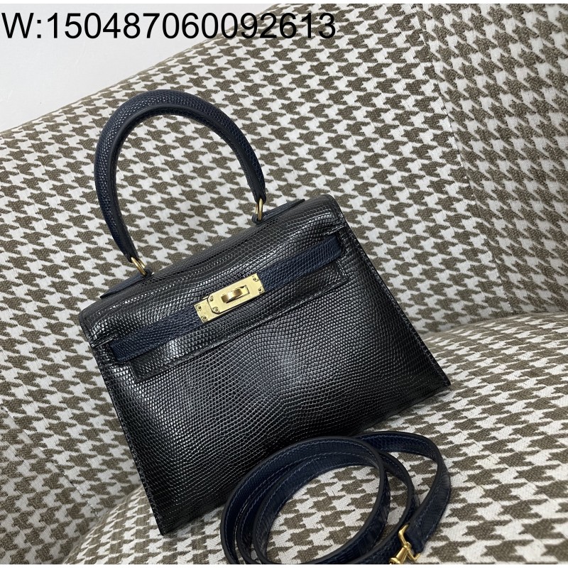 • [장인의집] 에르메스 켈리 금장 네이비 블랙 도마뱀 가죽