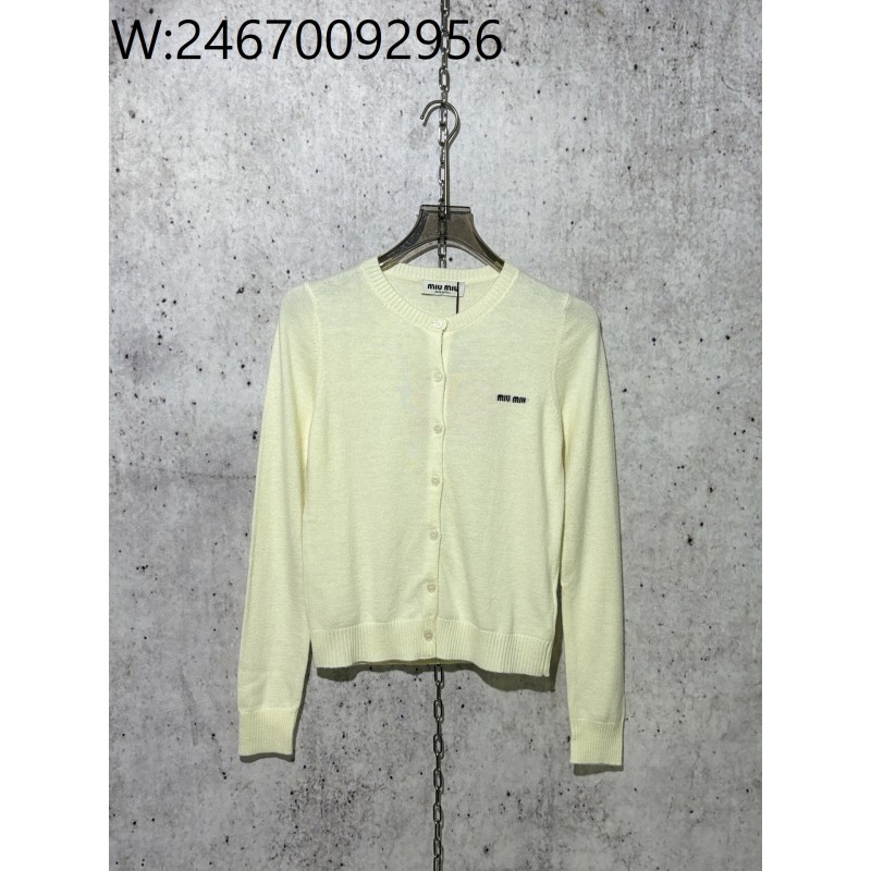 • [사슬공장] 미우미우 모노그램 자카드 단색 단추 가디건 화이트