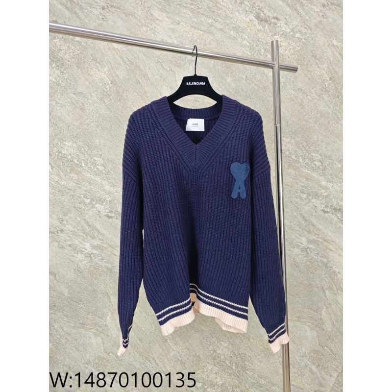 GTR공장 아미 점보 로고 배색 자카드 V넥 니트 네이비 요약정보 및 구매