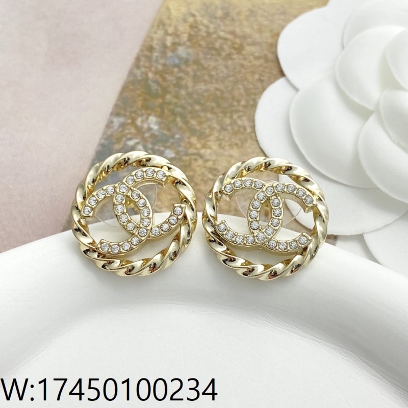 • AGG 샤넬 큐빅 CC로고 동그라미 귀걸이 골드