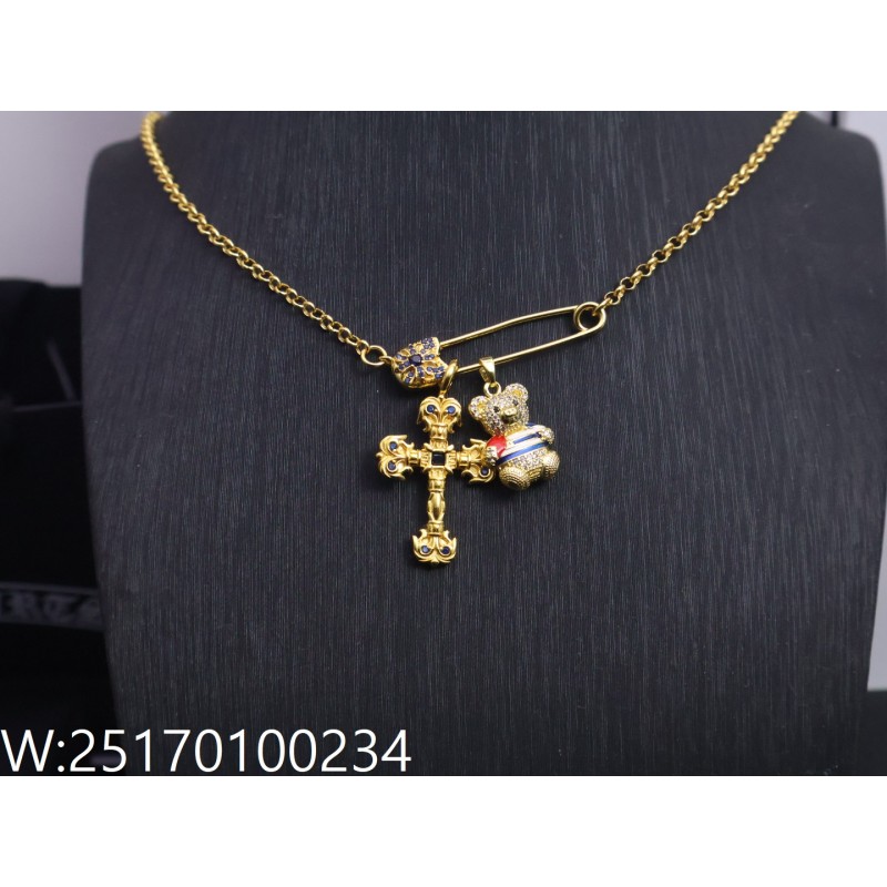 • AGG 크롬하츠 십자가 테디베어 펜던트 목걸이 골드