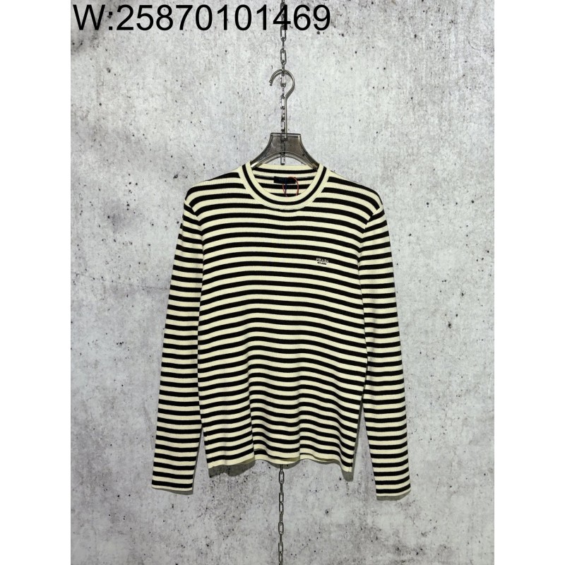 • [사슬공장] 프라다 모노그램 스트라이프 니트 블랙 베이지