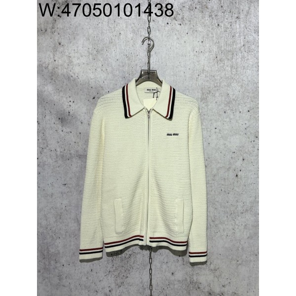 [사슬공장] 미우미우 SS25 어깨 지퍼 카라 가디건 베이지