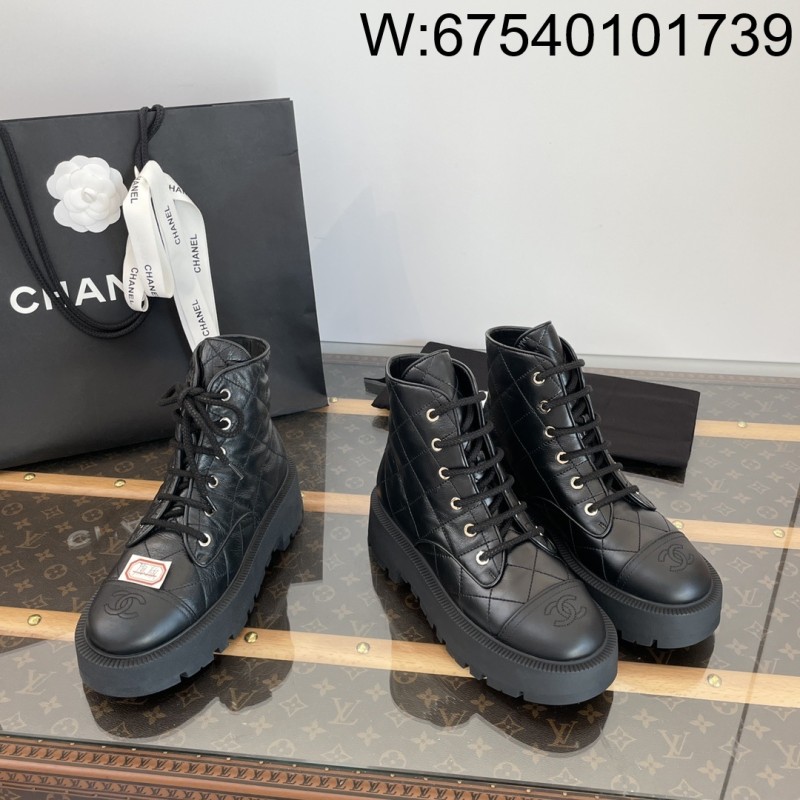 • [DXJ] 샤넬 CC로고 자수 퀼팅 부츠 블랙