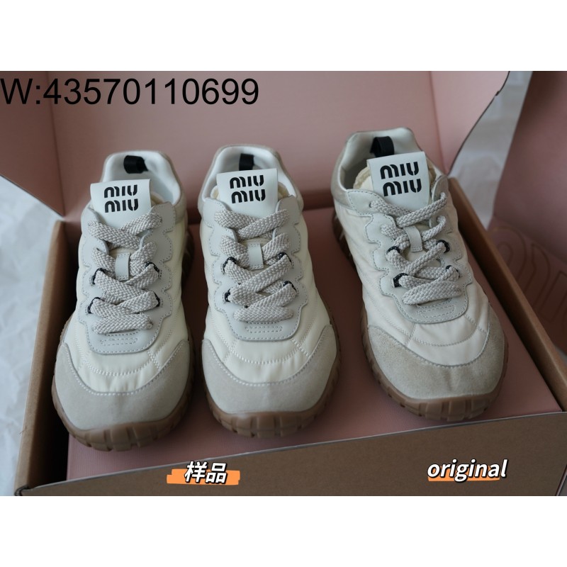 • [LP공장] 미우미우 타이어 테크니컬 패브릭 앤 스웨이드 스니커즈 아이보리