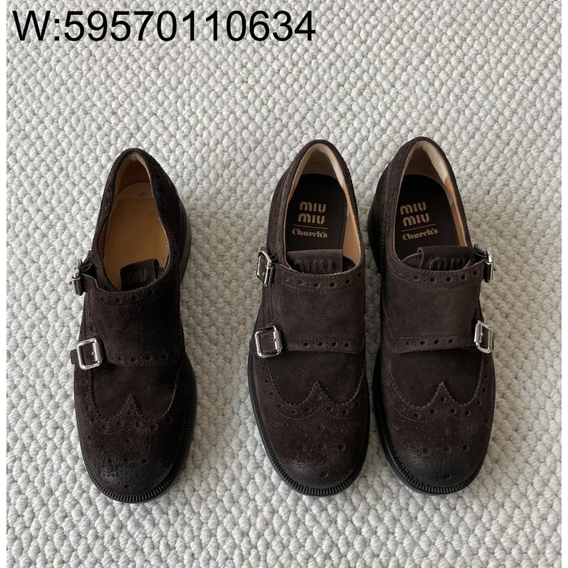 • [LP공장] 미우미우 처치스 스웨이드 몽크 스트랩 브로그 다크 브라운 5E039E