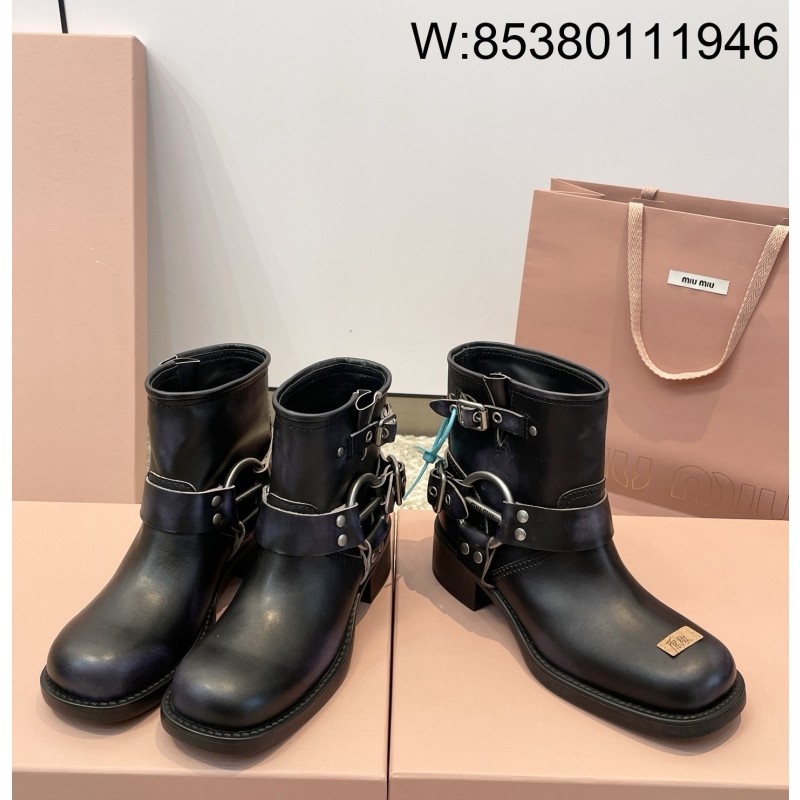 • [DXJ] 미우미우 레더 바이커 부츠 시에나