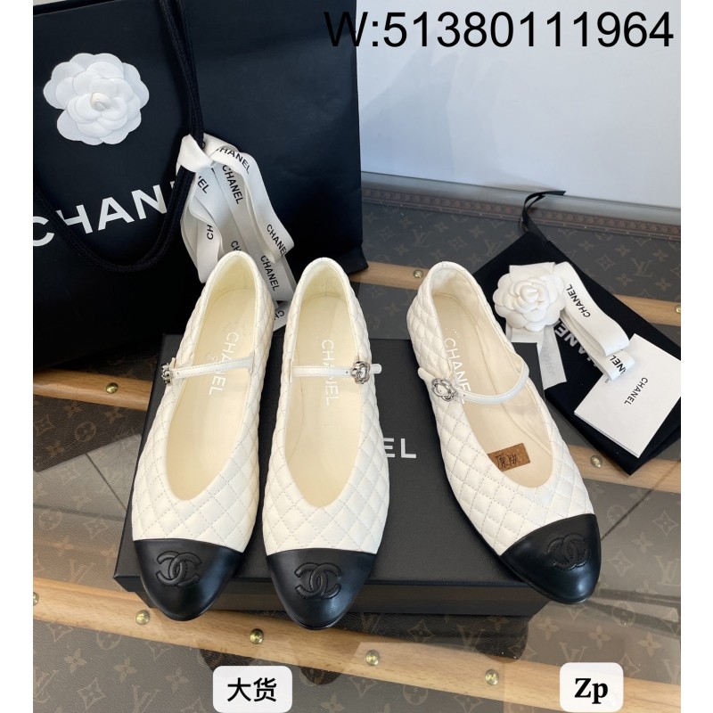 • [DXJ] 샤넬 25A 퀼팅 메리제인 플랫 슈즈 화이트 블랙