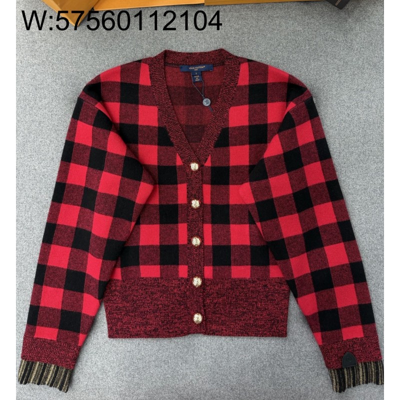 • TJ공장 루이비통 다미에 배색 체크 가디건 레드