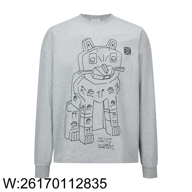 • [잔디집2] 로에베 고양이 프린트 긴팔티 그레이