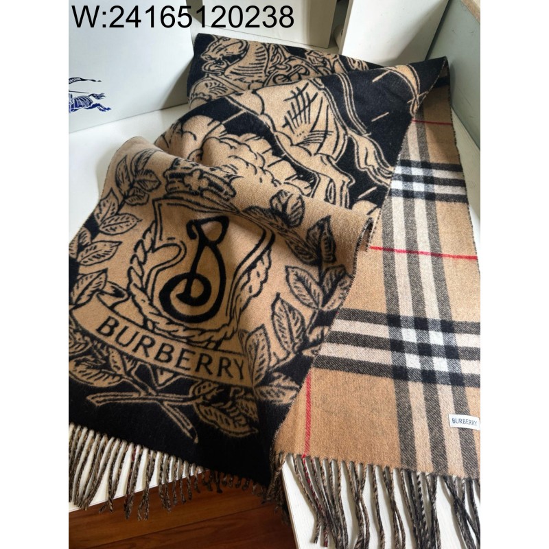 • AGG 버버리 양면 캐시미어 스카프 카키 210*50cm 캐시미어100%