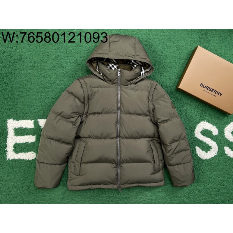 • [잔디집1] 버버리 승마 로고 소매 탈부착 패딩 그린