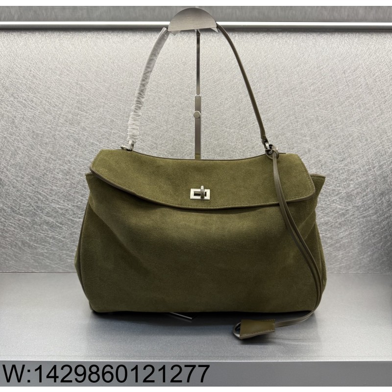 • [dxg] 발렌시아가 로데오 핸드백 미디움 카키 35cm 스웨이드 실버 장식