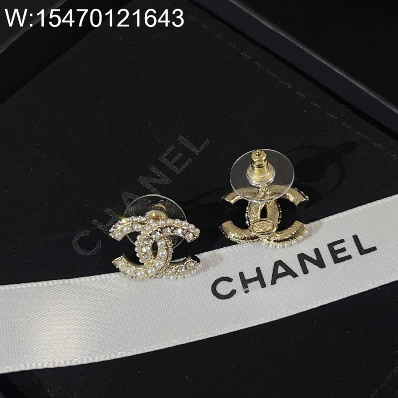 • AGG 샤넬 진주 큐빅 CC 귀걸이 골드