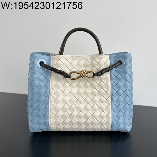 • 징 팩토리 보테가베네타 미디엄 안디아모 배색 화이트 스카이 블루 796592 32.5*24*12cm