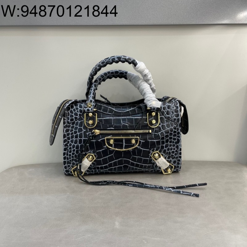 • [dxg] 발렌시아가 르 시티 스몰 백 24cm 그레이 블랙 샤이니 골드 장식 악어무늬