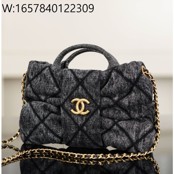 [JD] 샤넬 맥시 보우 백 워시드 데님 골드 메탈 블랙 18*26*5cm