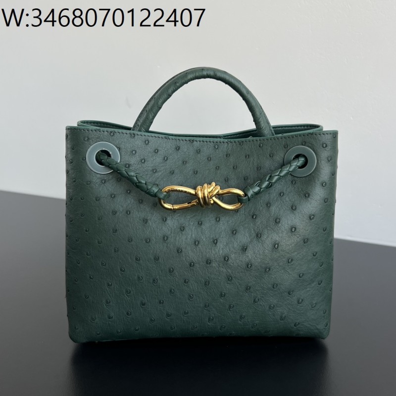 • 징 팩토리 보테가베네타 스몰 안디아모 흑녹색 805231 25*20*10cm 타조가죽