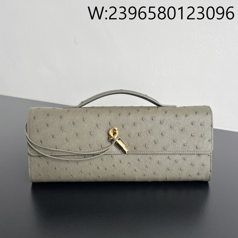 • 징 팩토리 보테가베네타 안디아모 클러치 타조가죽 회녹색 805241 31*13*3cm