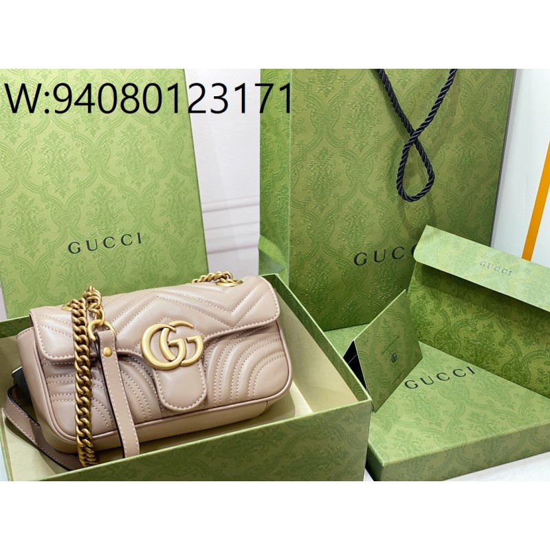 • [JHL] 구찌 마몽 마틀라세 레더 체인 숄더백 446744 22*13*6cm 라이트 갈색