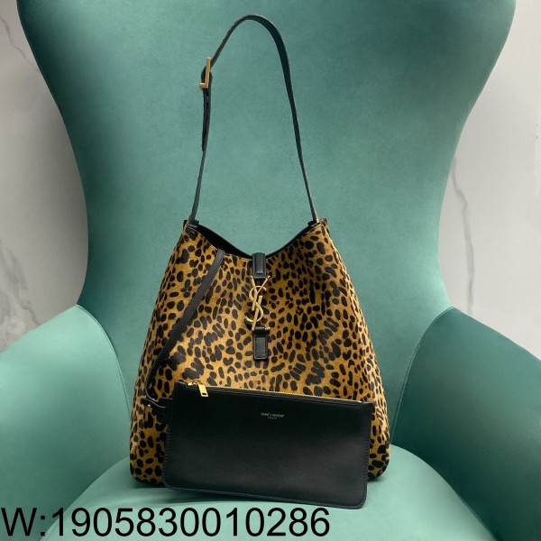 Pomegrante 생로랑 르 5 A 7 서플 라지 포니 헤어 레더 베이지 블랙 753837 30*13*31cm