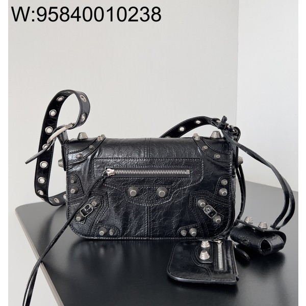 • [dxg] 발렌시아가 아레나 램스킨 에이지드 실버 하드웨어 르 카골 XS 플랩백 블랙 24*14*5cm