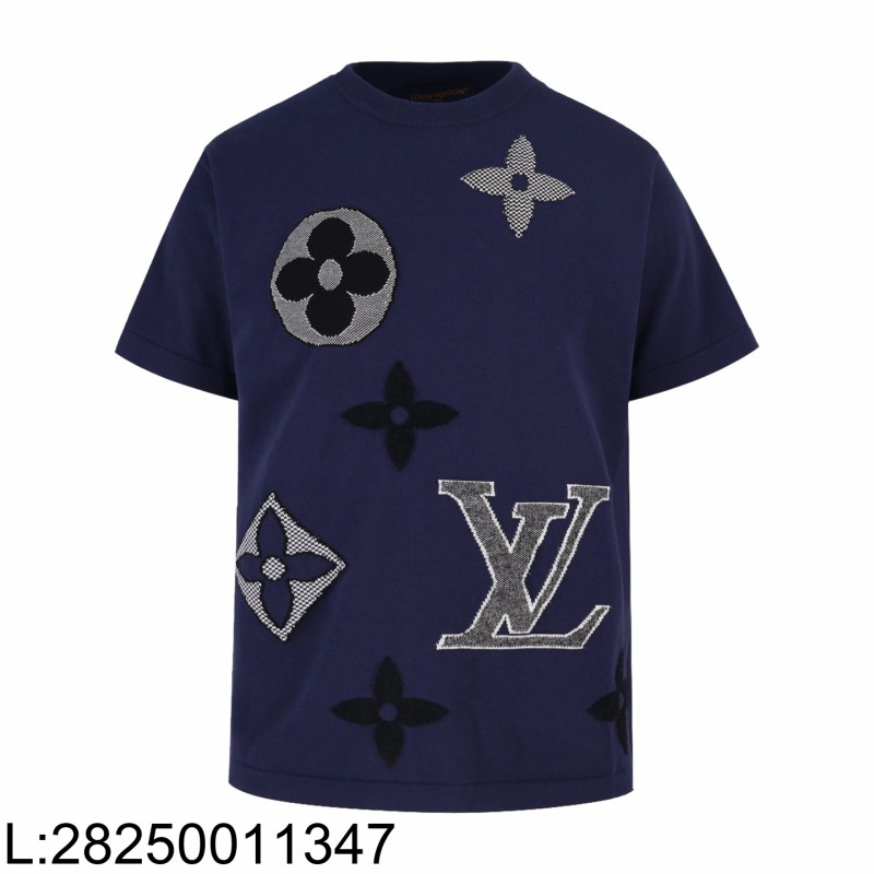 • [잔디집2] 루이비통 LV 로고 자카드 니트 반팔티 네이비