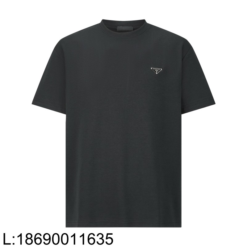 • [잔디집2] 프라다 메탈 삼각로고 순색 반팔티 블랙