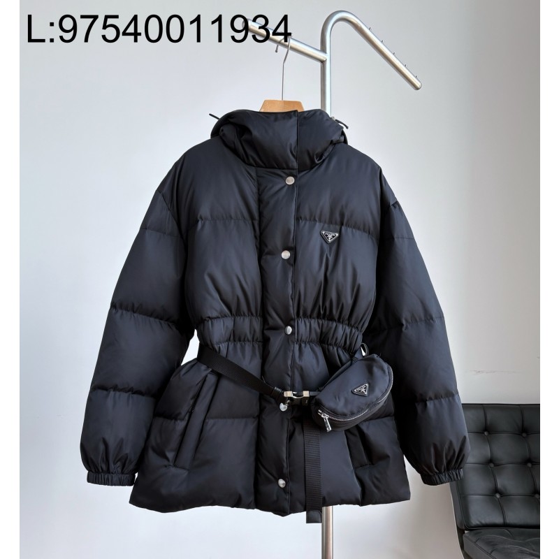 • [GJ] 프라다 리나일론 벨티드 다운 자켓 백 롱 패딩 블랙