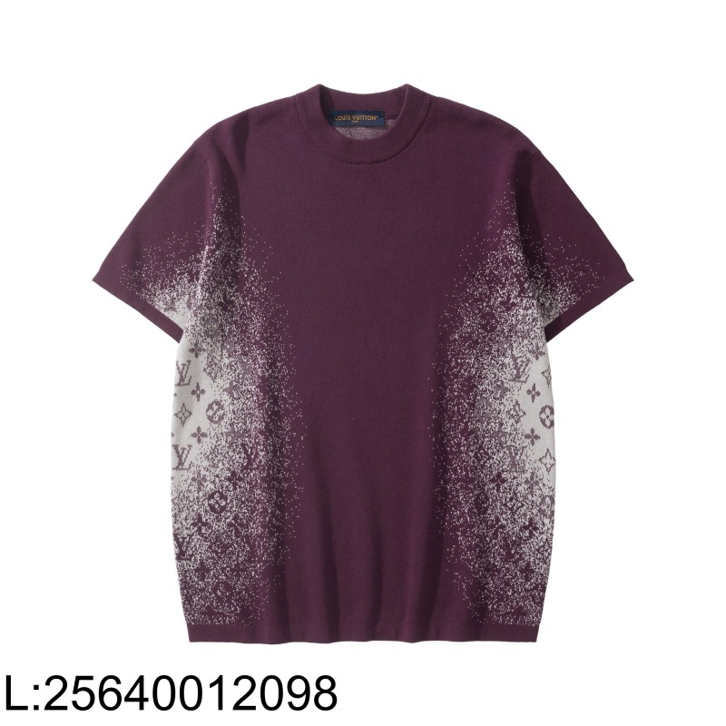 • [흰] 루이비통 옆 그라데이션 모노그램 니트 반팔티 와인