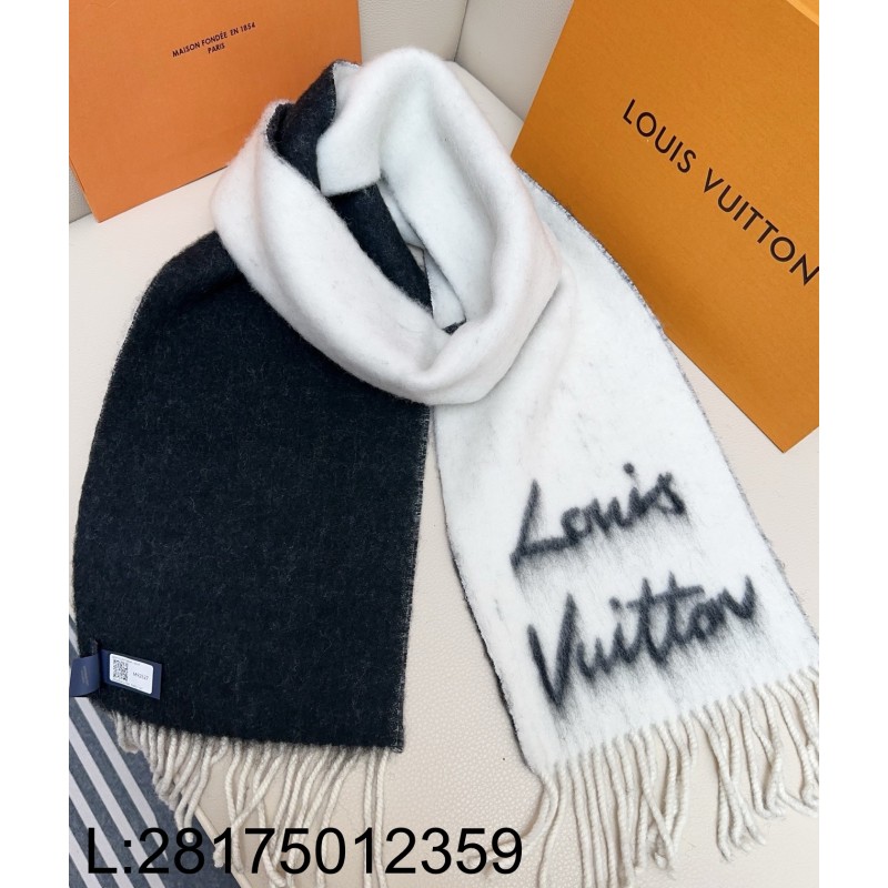 • AGG 루이비통 모노그램 양색 스카프 블랙 화이트 25*200cm 면양털 58% 42%알파카
