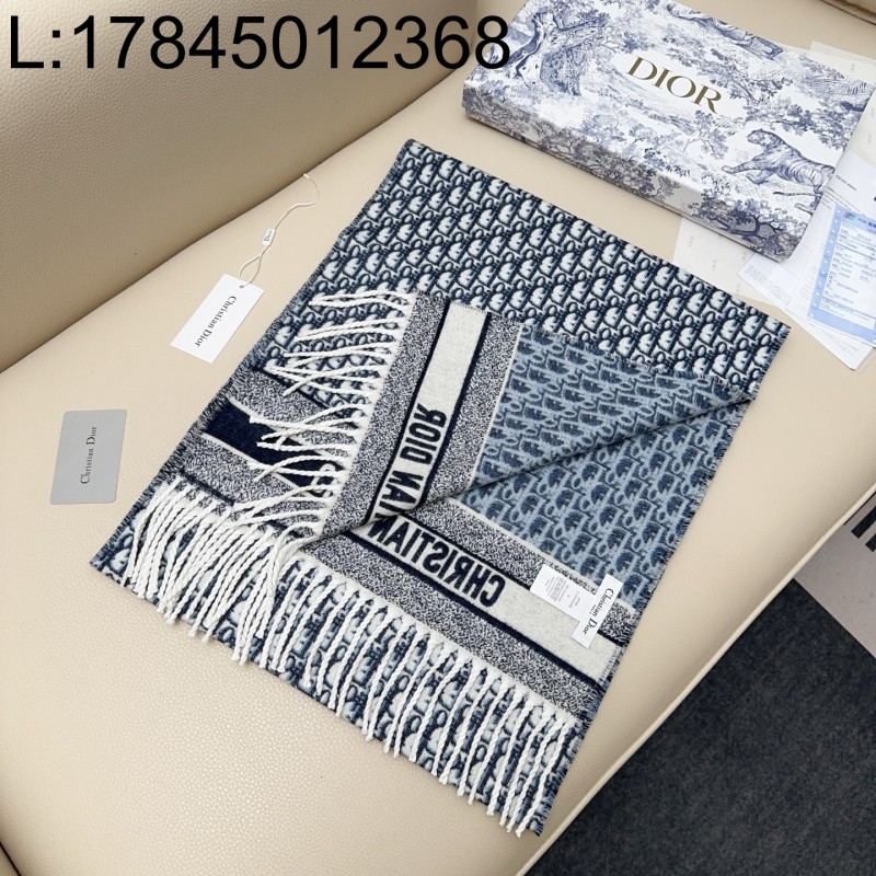 • AGG 디올 오블리크 자카드 캐시미어 스카프 블루 45*200cm