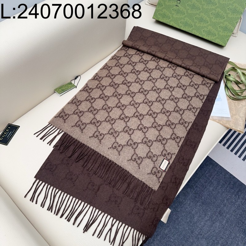 • AGG 구찌 GG로고 양색 스카프 다크 브라운 47*200cm 캐시미어 100%