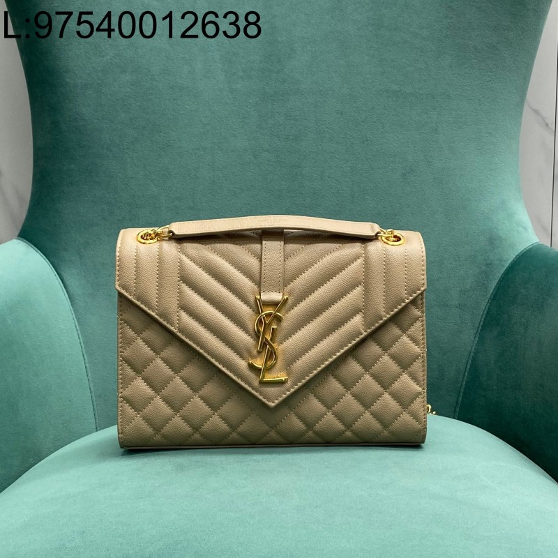 • Pomegrante 생로랑 그랑 드 뿌드르 퀼팅 가죽 ENVELOPE 미디엄 600185 24*6*17cm 베이지